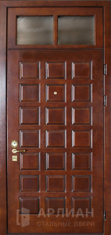 Высокая входная дверь с фрамугой наверху орех №6