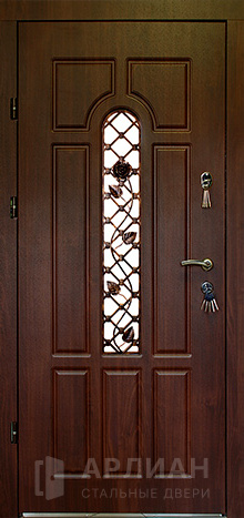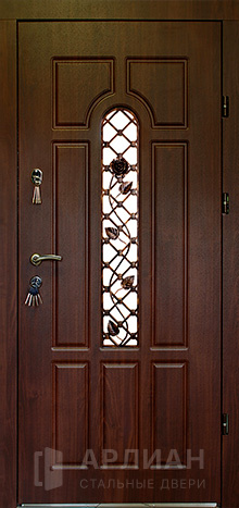 Стальная входная дверь в квартиру с ковкой и стеклом №14