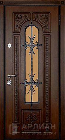 Фото «Стальная входная дверь в квартиру с ковкой и стеклом №14»