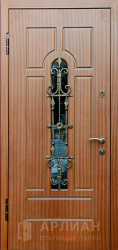 Металлическая дверь МДФ шпон со стеклом и ковкой №19