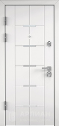 Стальная дверь белого цвета с панелью МДФ и молдингом №96