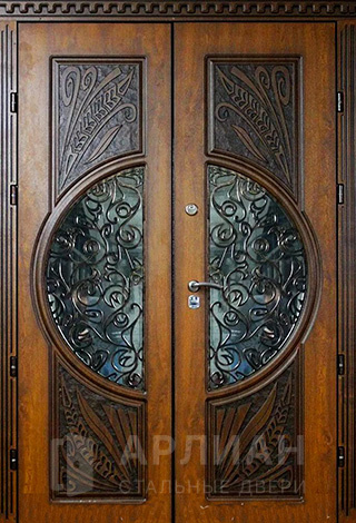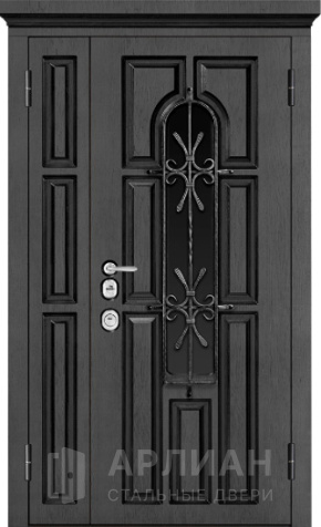 Утепленная входная дверь для коттеджа с кованными элементами №28